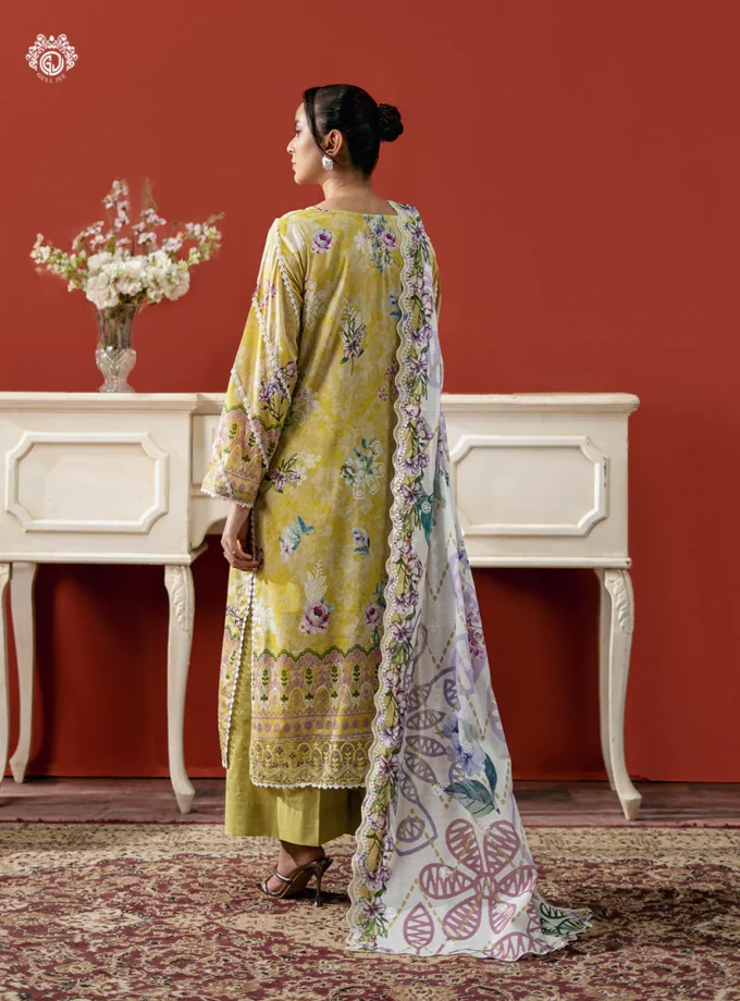 Unstitched 3Pc Embroidered Lawn Dress GullJee Ruhay Sukhan 810