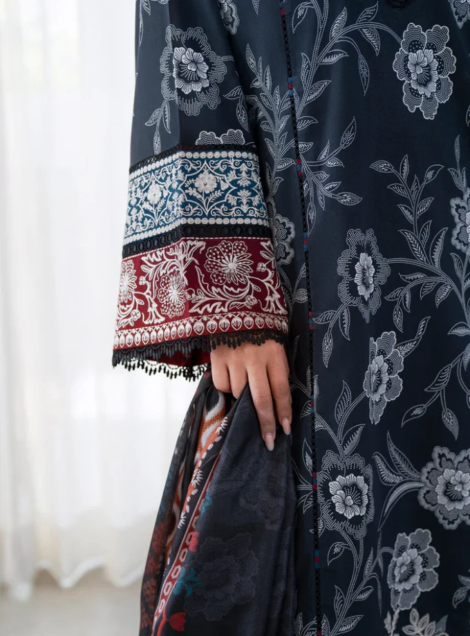 Unstitched 3Pc Embroidered Lawn Dress GullJee Ruhay Sukhan 804