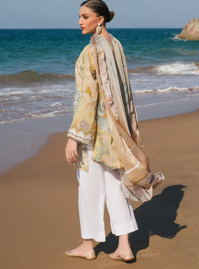 Unstitched 3Pc Embroidered Lawn Dress GullJee Ruhay Sukhan 807