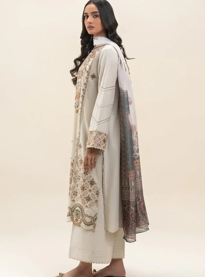 Unstitched 3Pc Embroidered Lawn Dress Orngate Gem by BeechTree