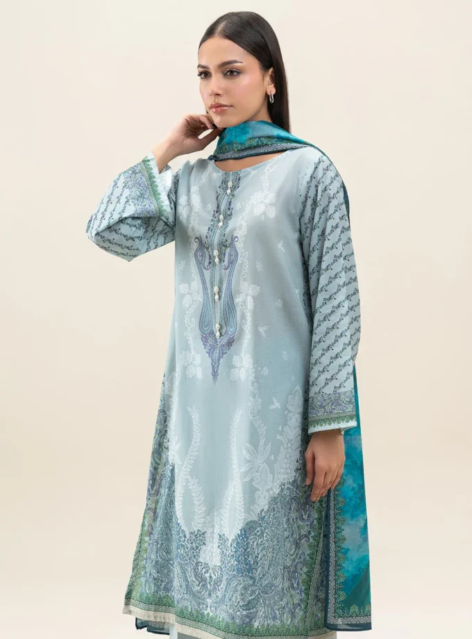 Unstitched 3Pc Embroidered Lawn Dress Pistachio Haze by BeechTree