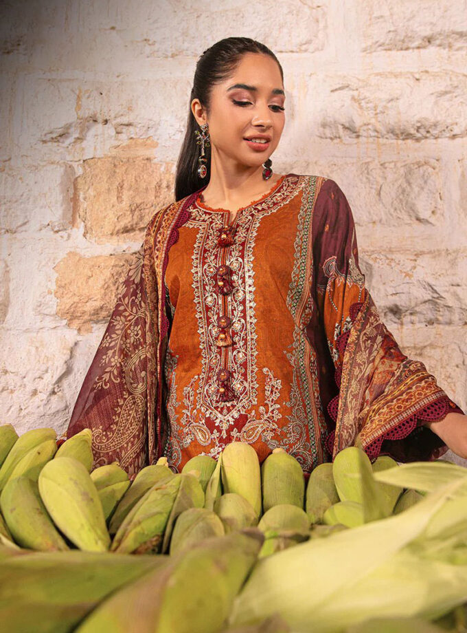 Asim Jofa Orange Embroidered Lawn 3pcs Suit