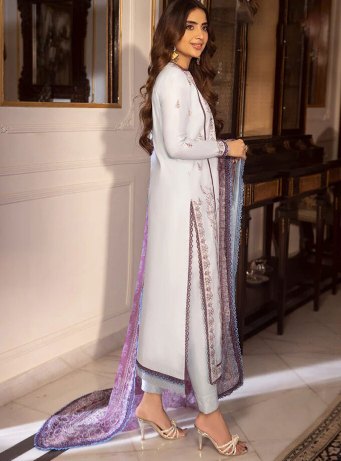 Asim Jofa Light Blue Embroidered Lawn 3Pcs