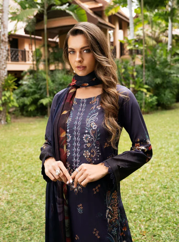 3Pc Unstitched Embroidered Swiss Lawn Dress Glorious Fashion 4
