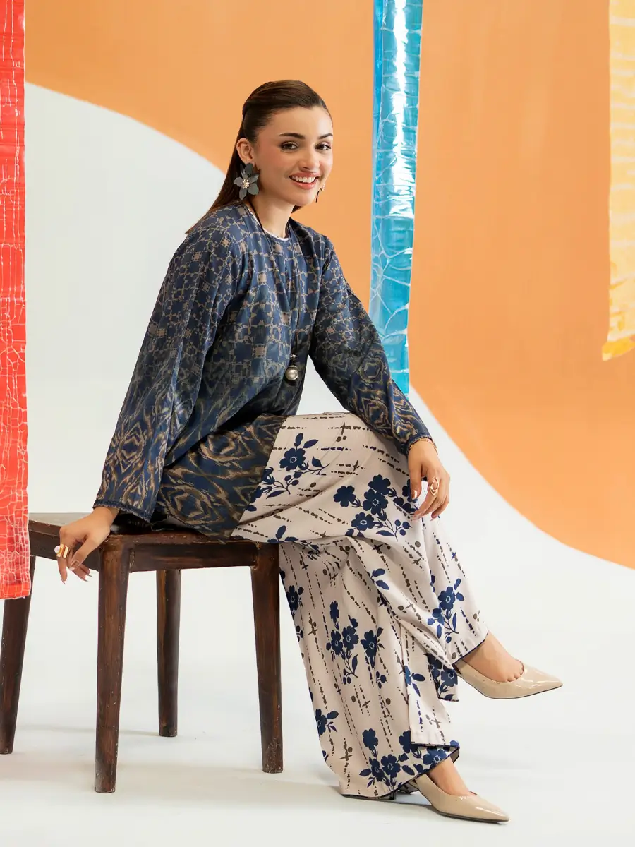 | Unstitched 2 Piece Printed Bana Dora Linen Dress. Echo by GullJee. |