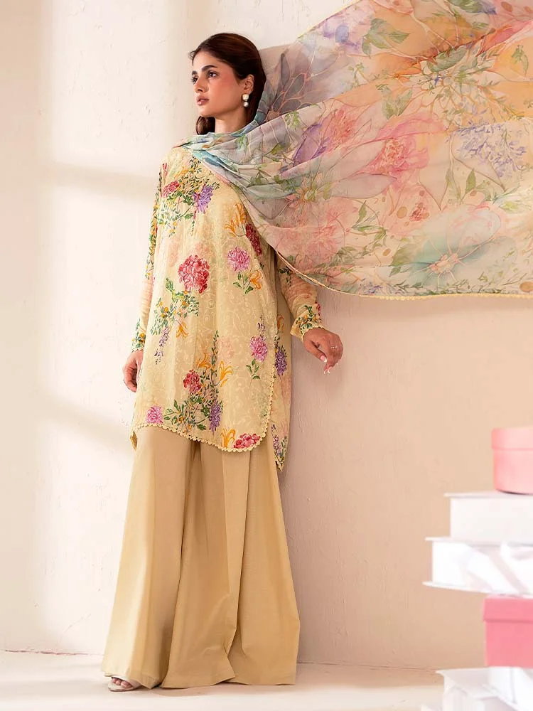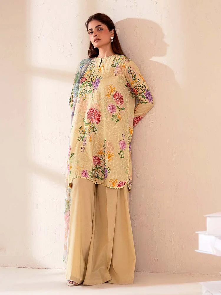 | Unstitched 3 Piece Chikankari Lawn Dress With Chiffon Dupatta. Binaas Chikankari Volume 2. |