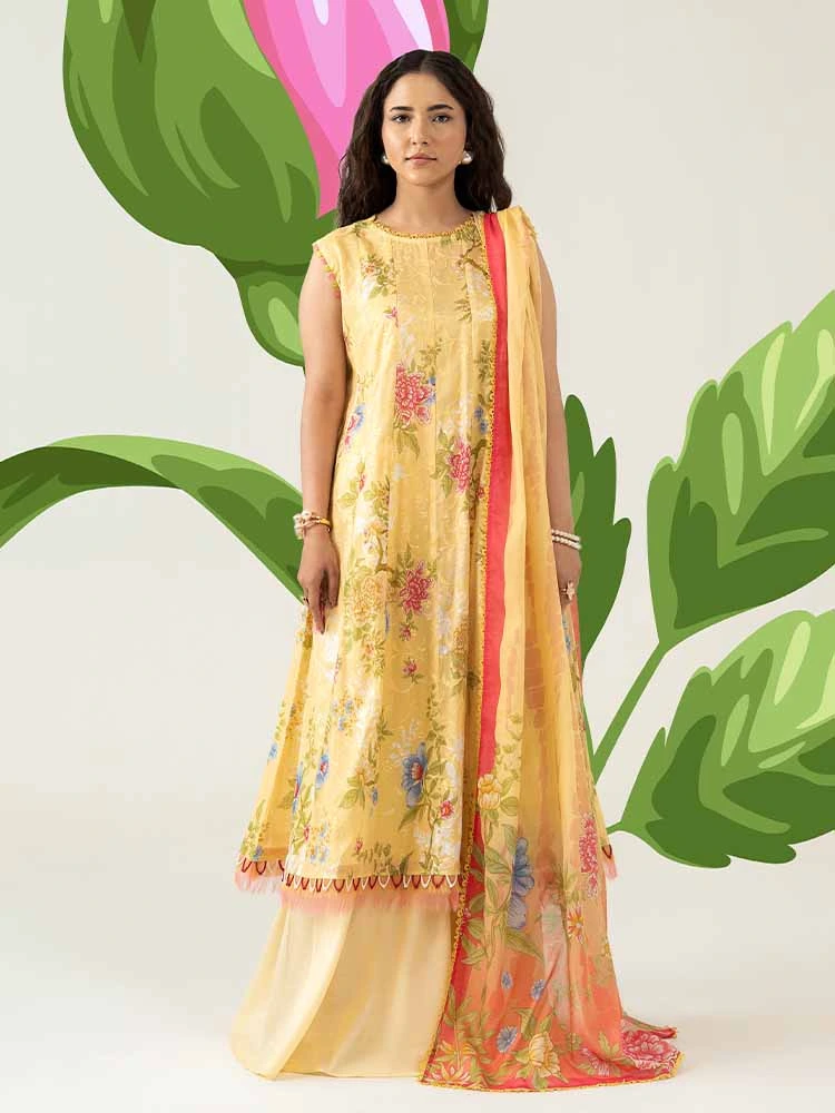 | Unstitched 3 Piece Digital Printed Chikankari Lawn Dress With Digital Printed Pure Lawn Dupatta Love Notes by Brenish |