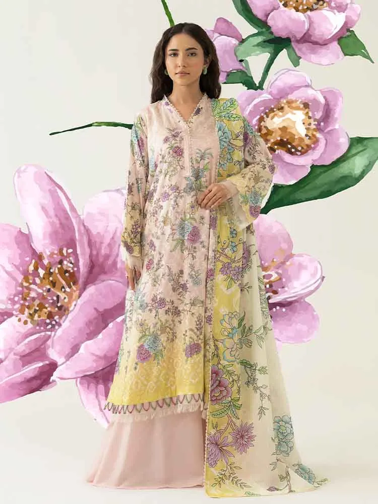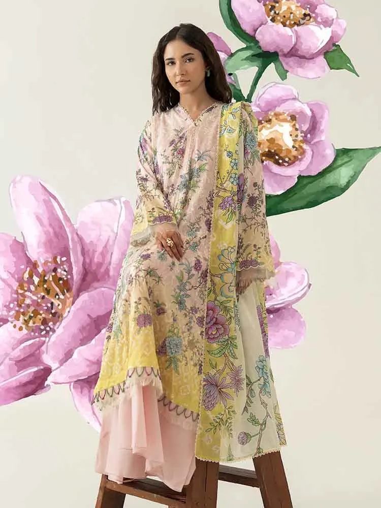 | Unstitched 3 Piece Digital Printed Chikankari Lawn Dress With Digital Printed Pure Lawn Dupatta Love Notes by Brenish |