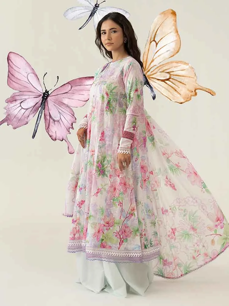 Unstitched 3Pc Digital Printed Chikankari Lawn Dress Love Notes by Brenish B 08