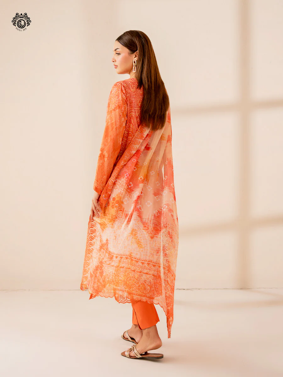 | Unstitched 3 Piece Embroidered Lawn Dress With Chiffon Dupatta GullJee Morja |