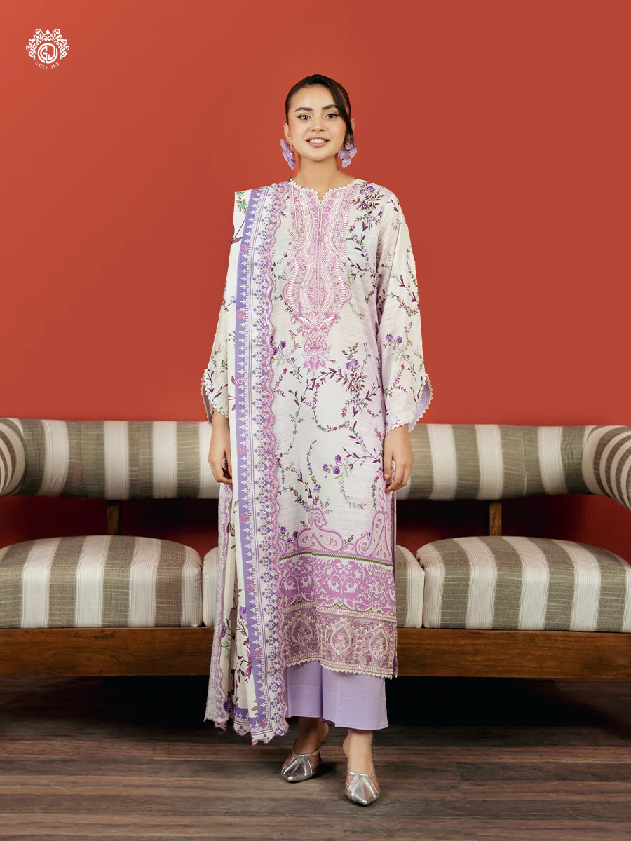 Unstitched 3Pc Embroidered Lawn Dress GullJee Ruhay Sukhan 801