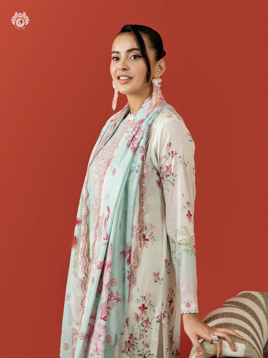 Unstitched 3Pc Embroidered Lawn Dress GullJee Ruhay Sukhan 804