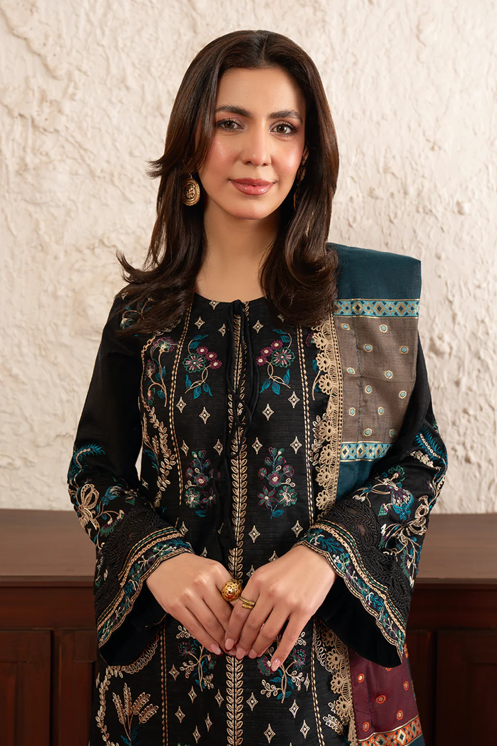 | Unstitched 3 Piece Embroidered Lawn Dress With Lawn Jacquard Dupatta Poshak by Johra |