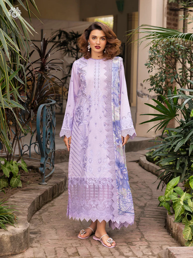 | Unstitched 3 Piece Embroidered Luxury Lawn Dress With Digital Printed Chiffon Dupatta GullJee Sophie |