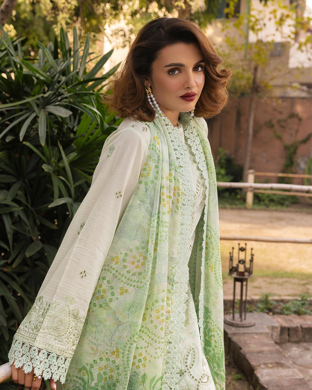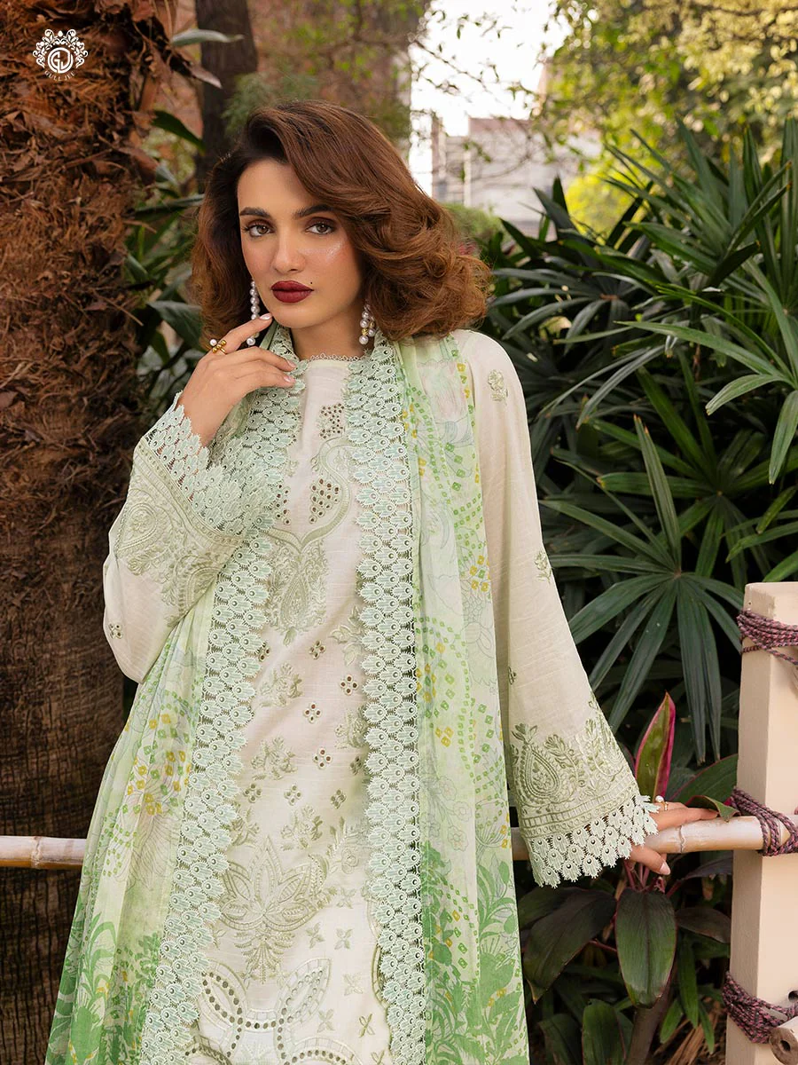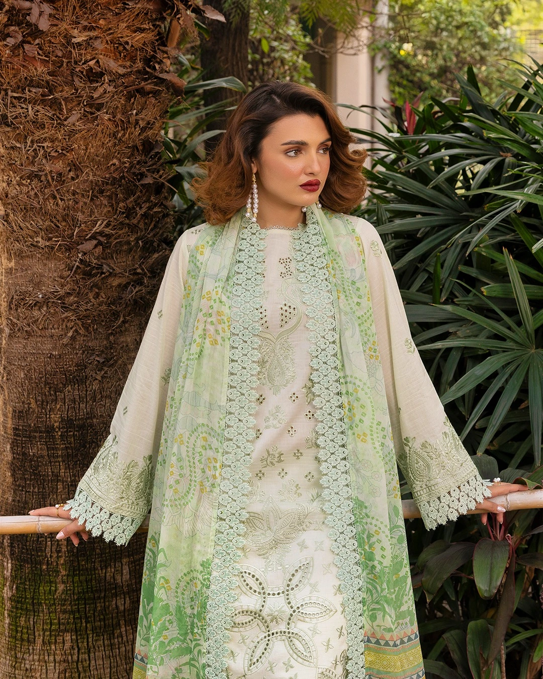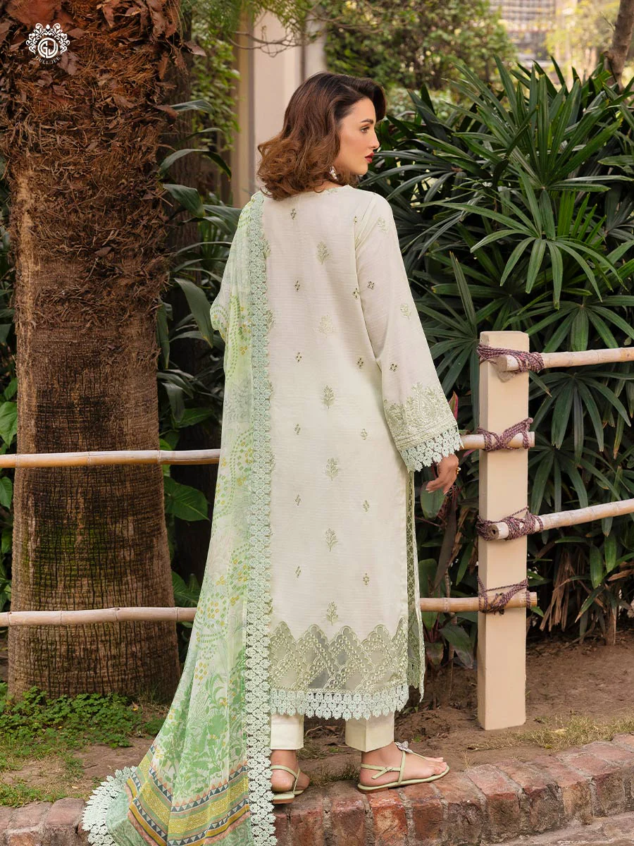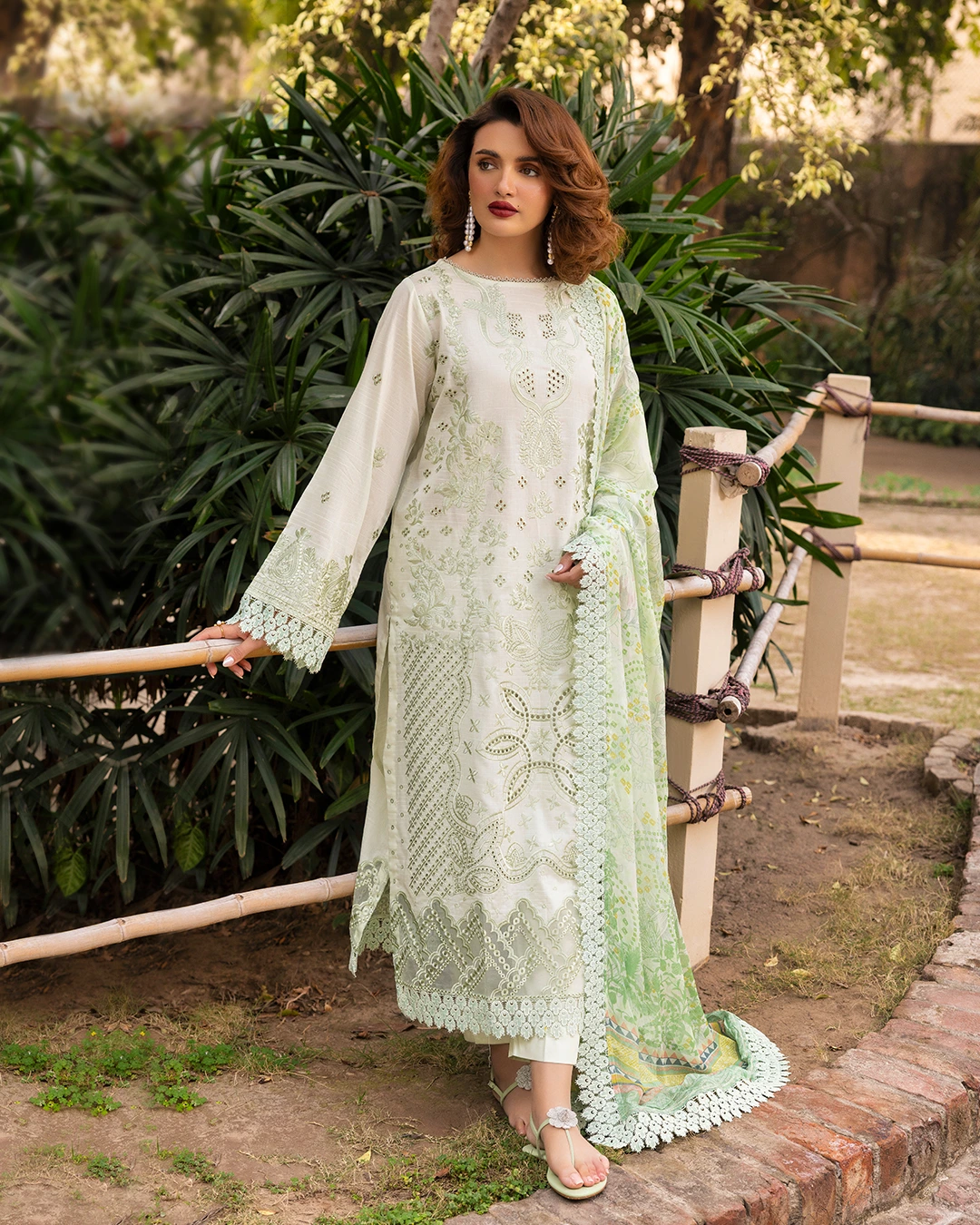 | Unstitched 3 Piece Embroidered Luxury Lawn Dress With Digital Printed Chiffon Dupatta GullJee Sophie |