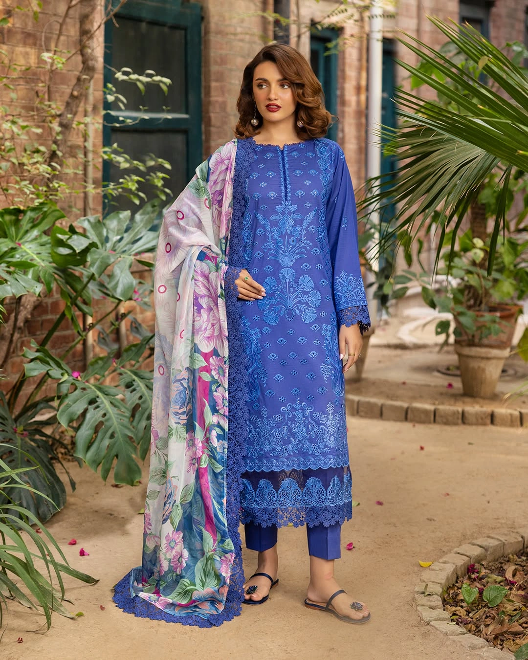 | Front, Back and Sleeves on Exclusive Luxury Lawn Boring Embroidered |