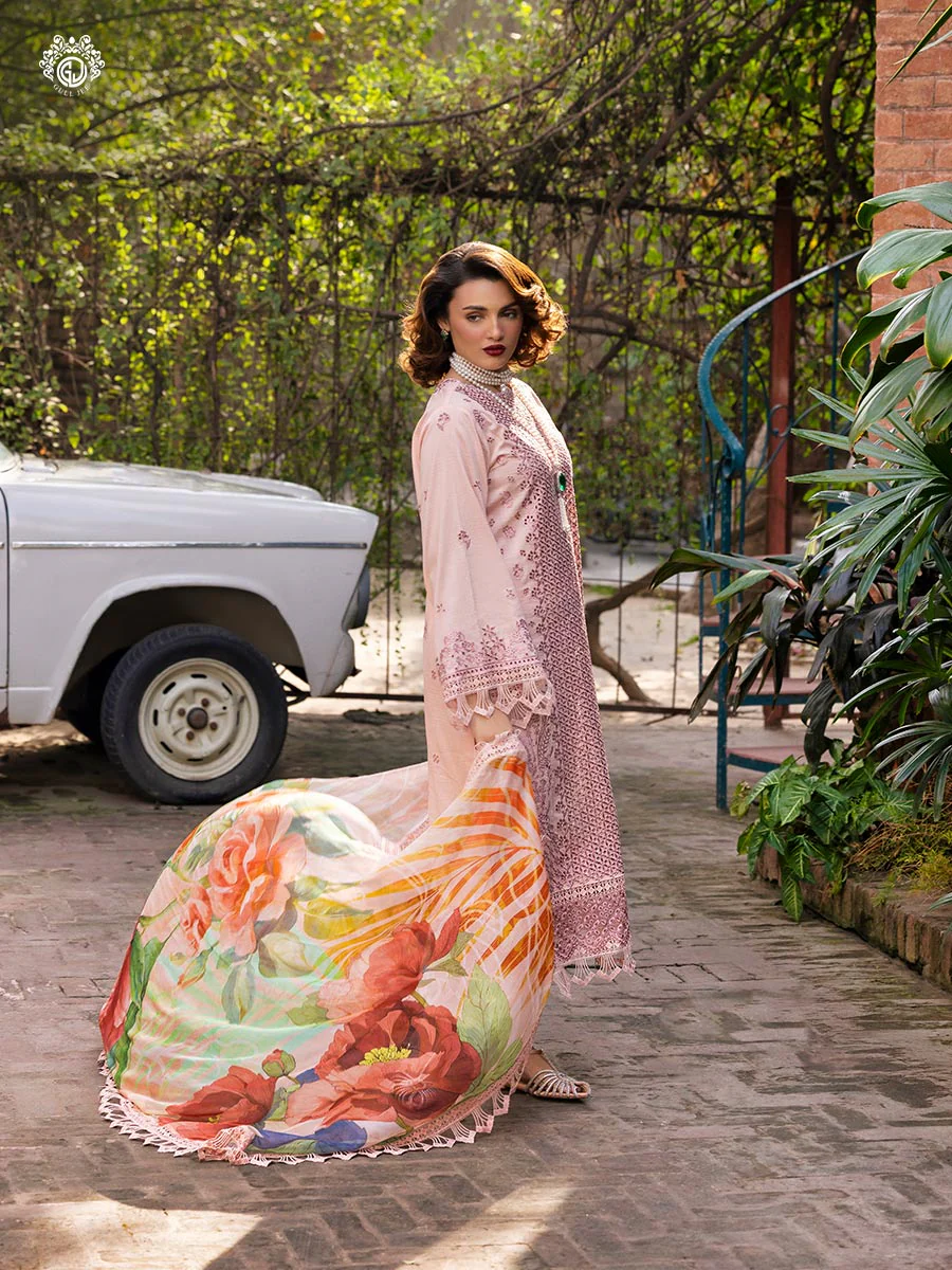 | Unstitched 3 Piece Embroidered Luxury Lawn Dress With Digital Printed Chiffon Dupatta GullJee Sophie |