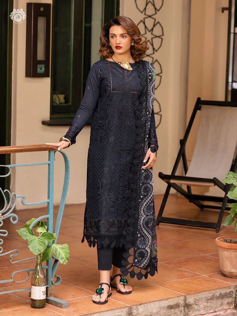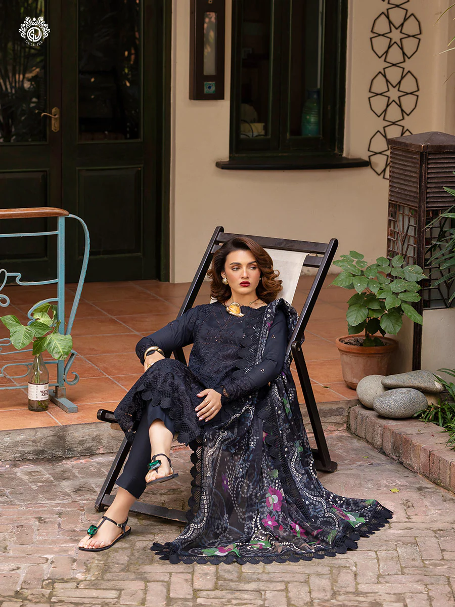 | Unstitched 3 Piece Embroidered Luxury Lawn Dress With Digital Printed Chiffon Dupatta GullJee Sophie |