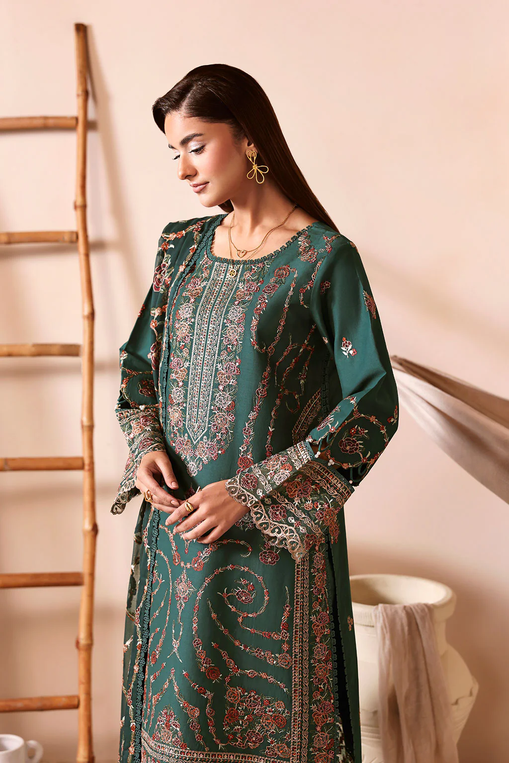 | Front, Back and Sleeves on Embroidered Luxury Lawn |