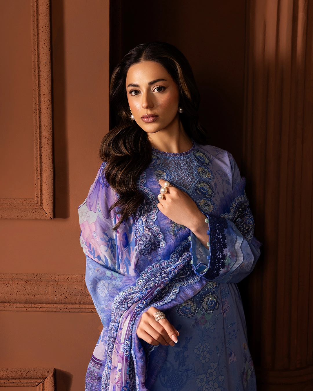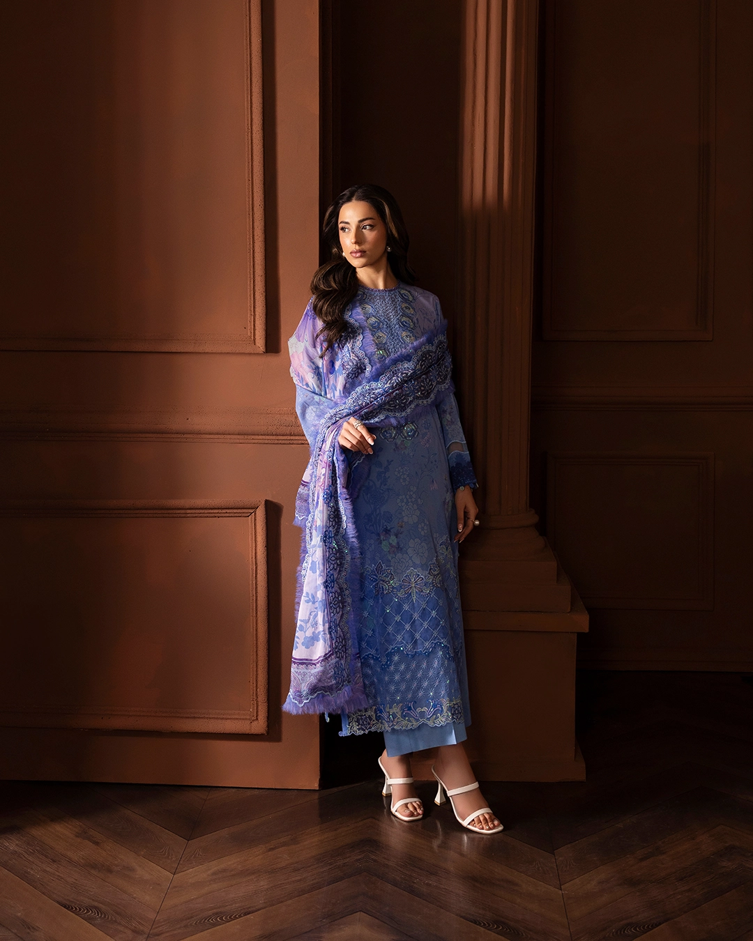 | Unstitched 3 Piece Embroidered Swiss Lawn Dress With Embroidered Chiffon Dupatta GullJee Safaira |