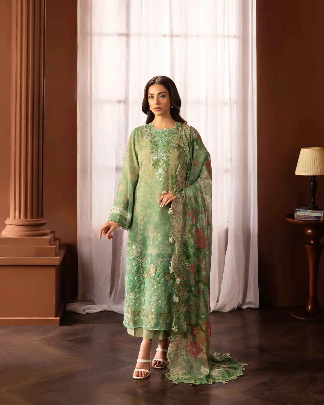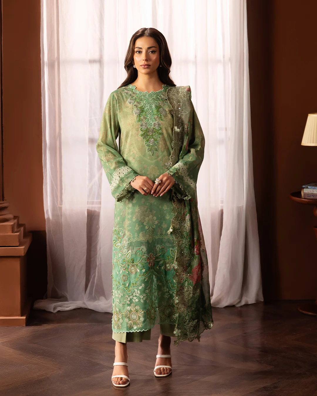 | Unstitched 3 Piece Embroidered Swiss Lawn Dress With Embroidered Chiffon Dupatta GullJee Safaira |