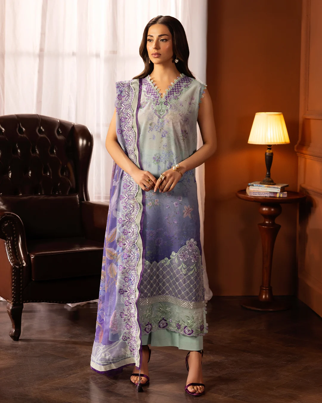 Unstitched 3 Piece Embroidered Swiss Lawn Dress With Embroidered Chiffon Dupatta GullJee Safaira