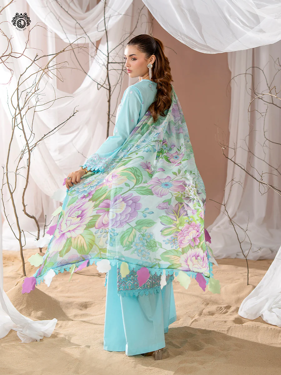 Unstitched 3Pc Exclusive Embroidered Lawn Dress GullJee Rang E Sahar A02
