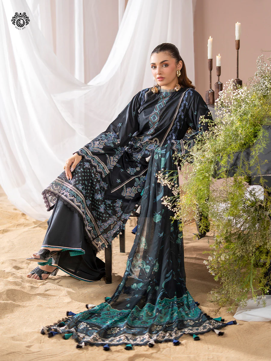 | Unstitched 3 Piece Exclusive Embroidered Lawn Dress With Chiffon Dupatta GullJee Rang E Sahar |