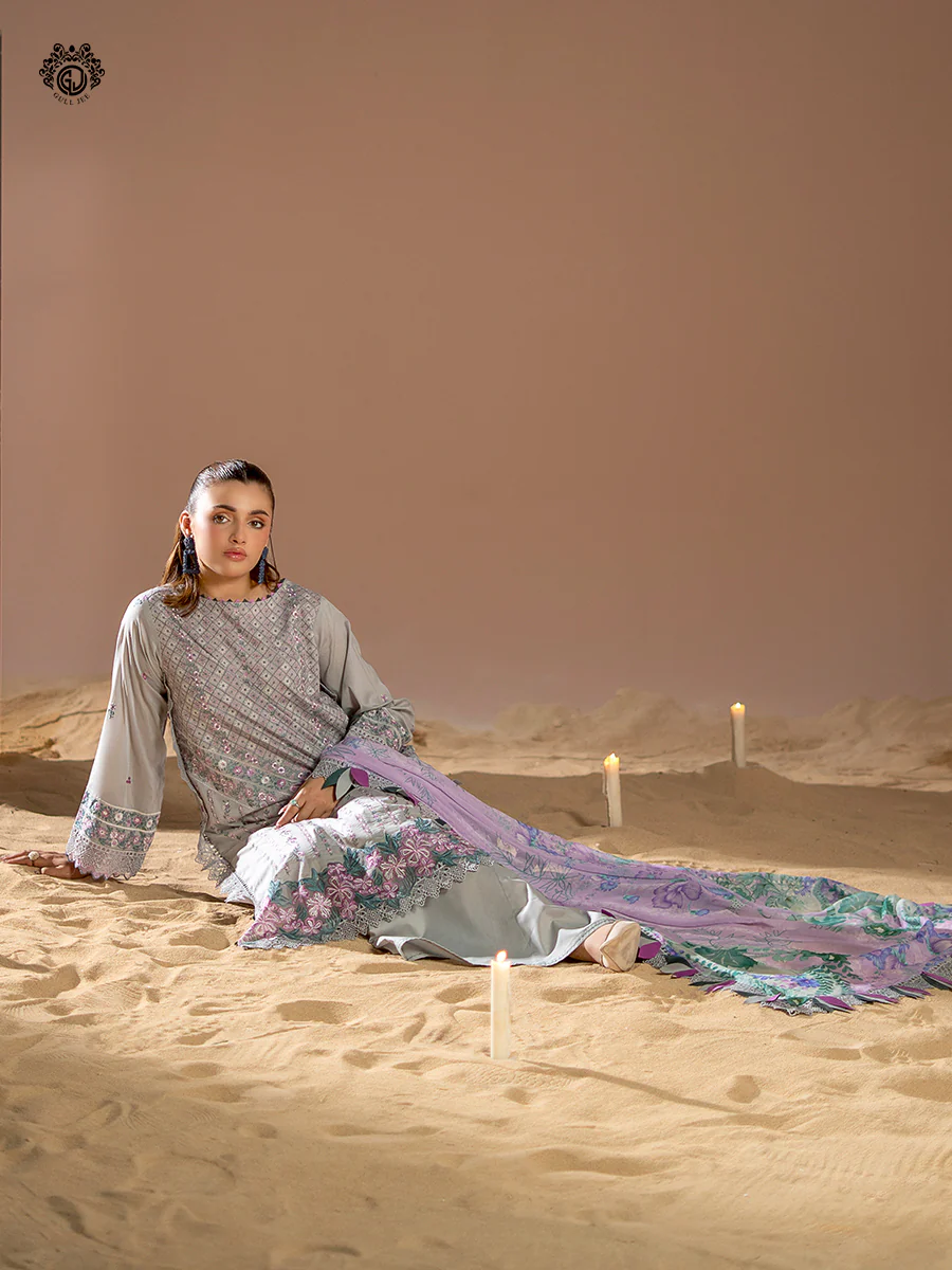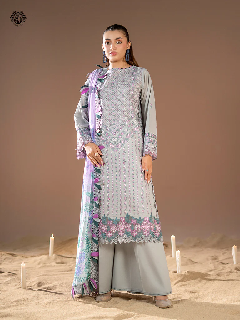 | Unstitched 3 Piece Exclusive Embroidered Lawn Dress With Chiffon Dupatta GullJee Rang E Sahar |