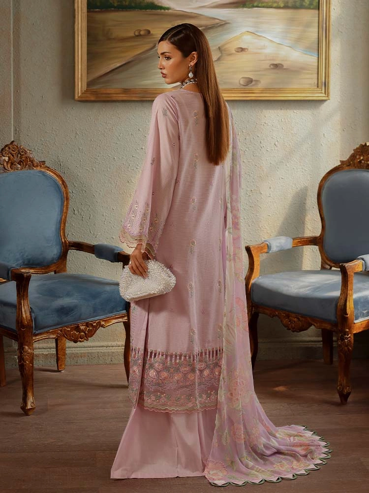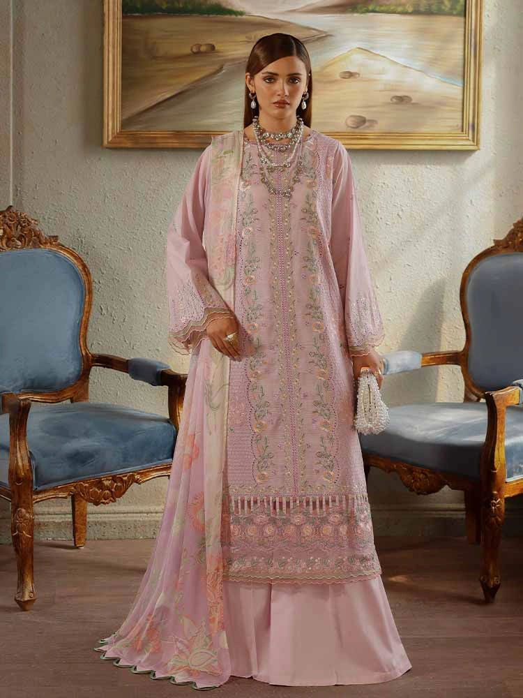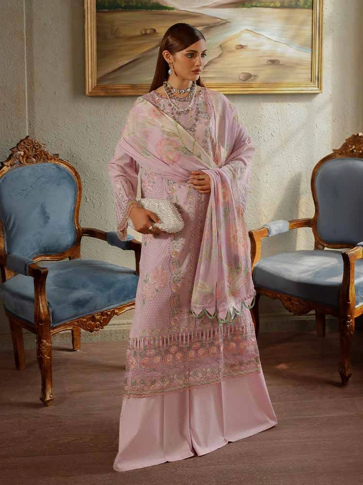| Unstitched 3 Piece Exclusive Embroidered Luxury Lawn Dress With Digital Printed Chiffon Dupatta Brenish Periwina |
