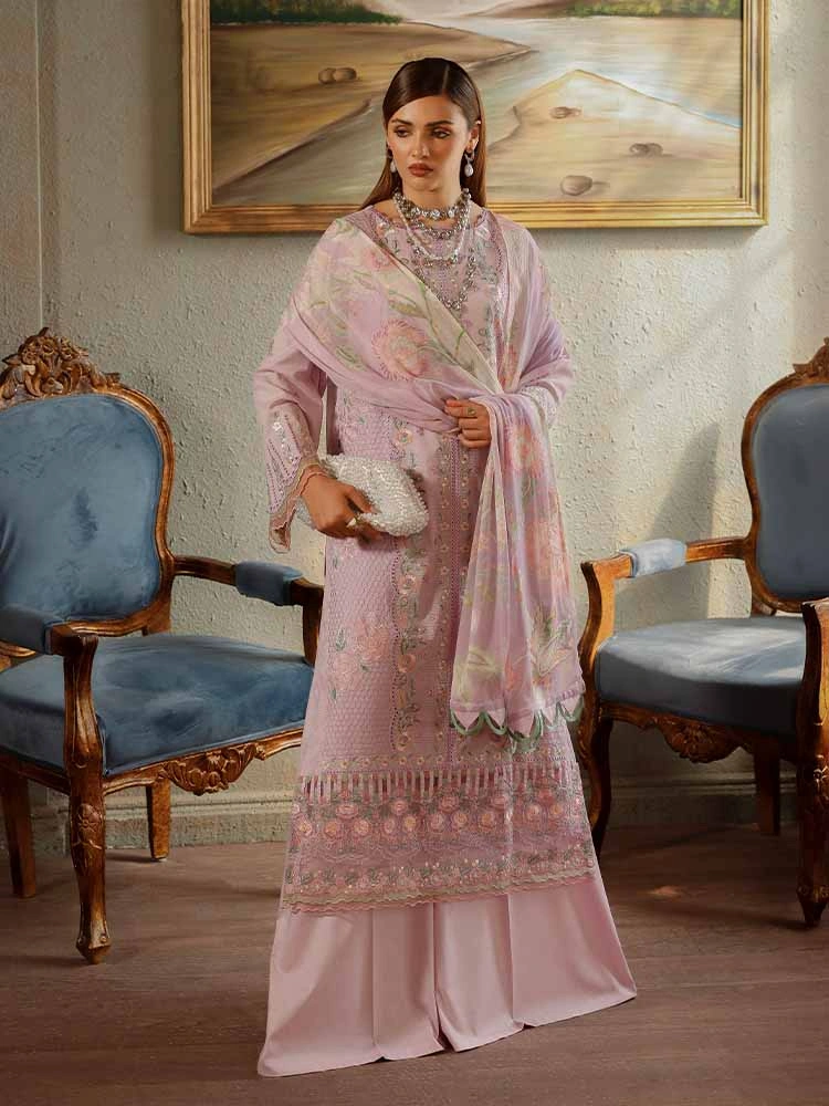 Unstitched 3Pc Exclusive Embroidered Luxury Lawn Dress Brenish Periwina 104