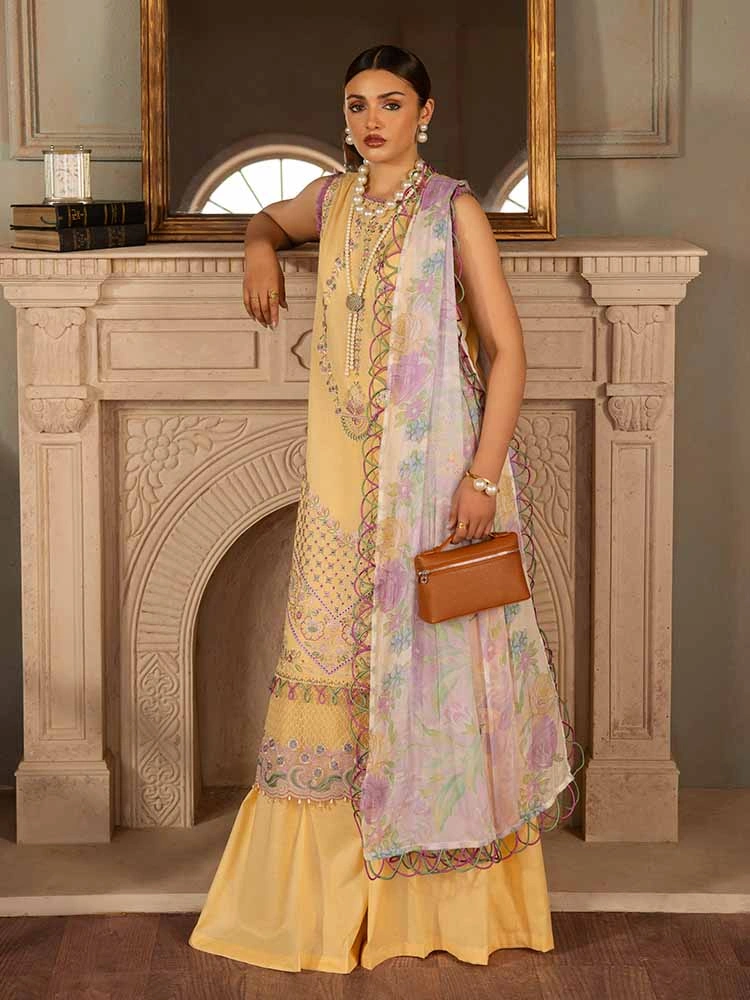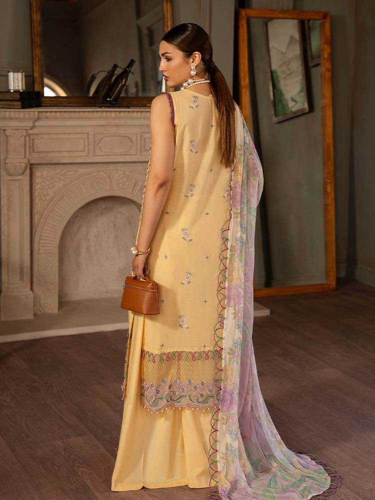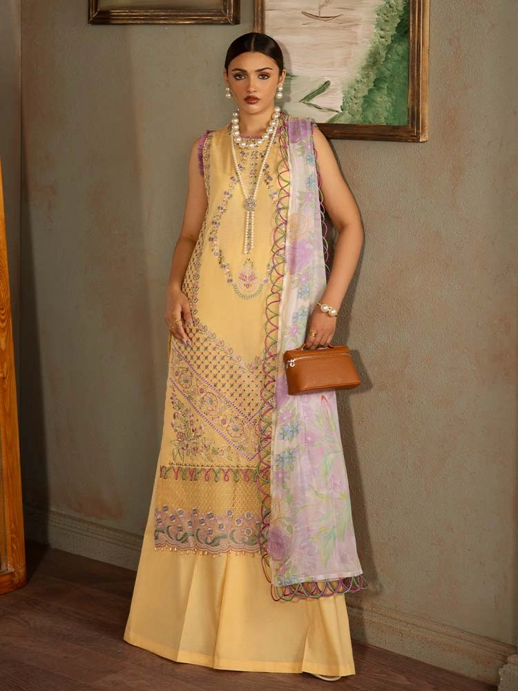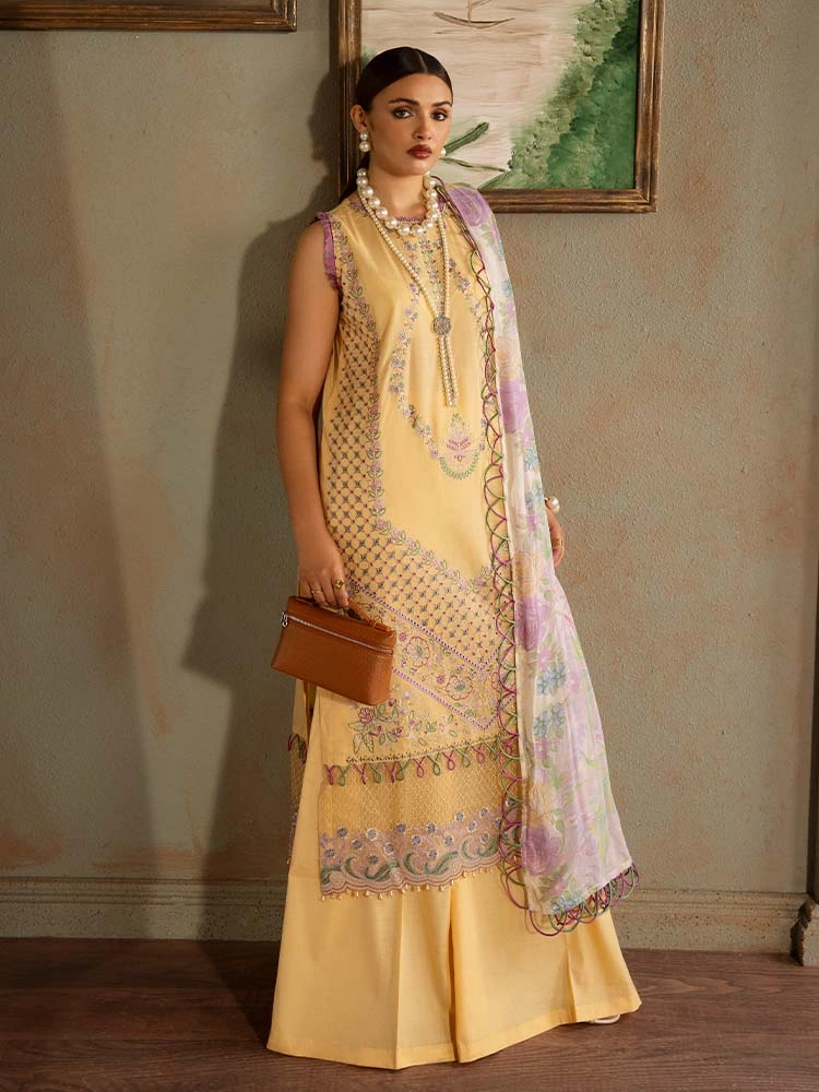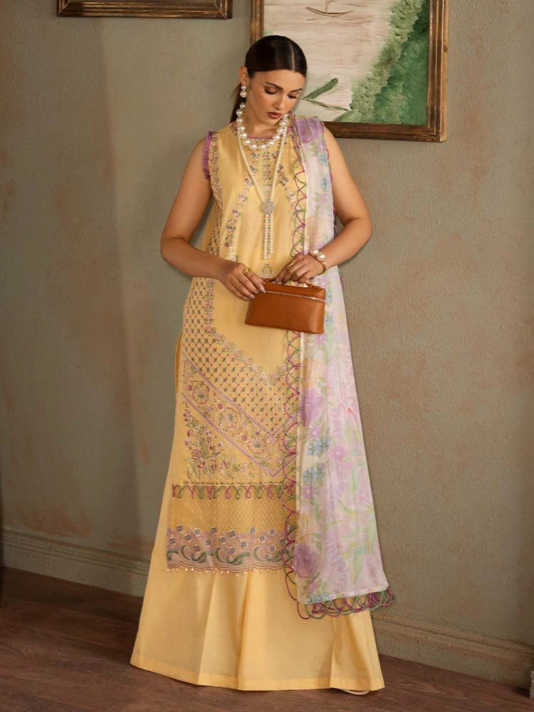 | Unstitched 3 Piece Exclusive Embroidered Luxury Lawn Dress With Digital Printed Chiffon Dupatta Brenish Periwina |