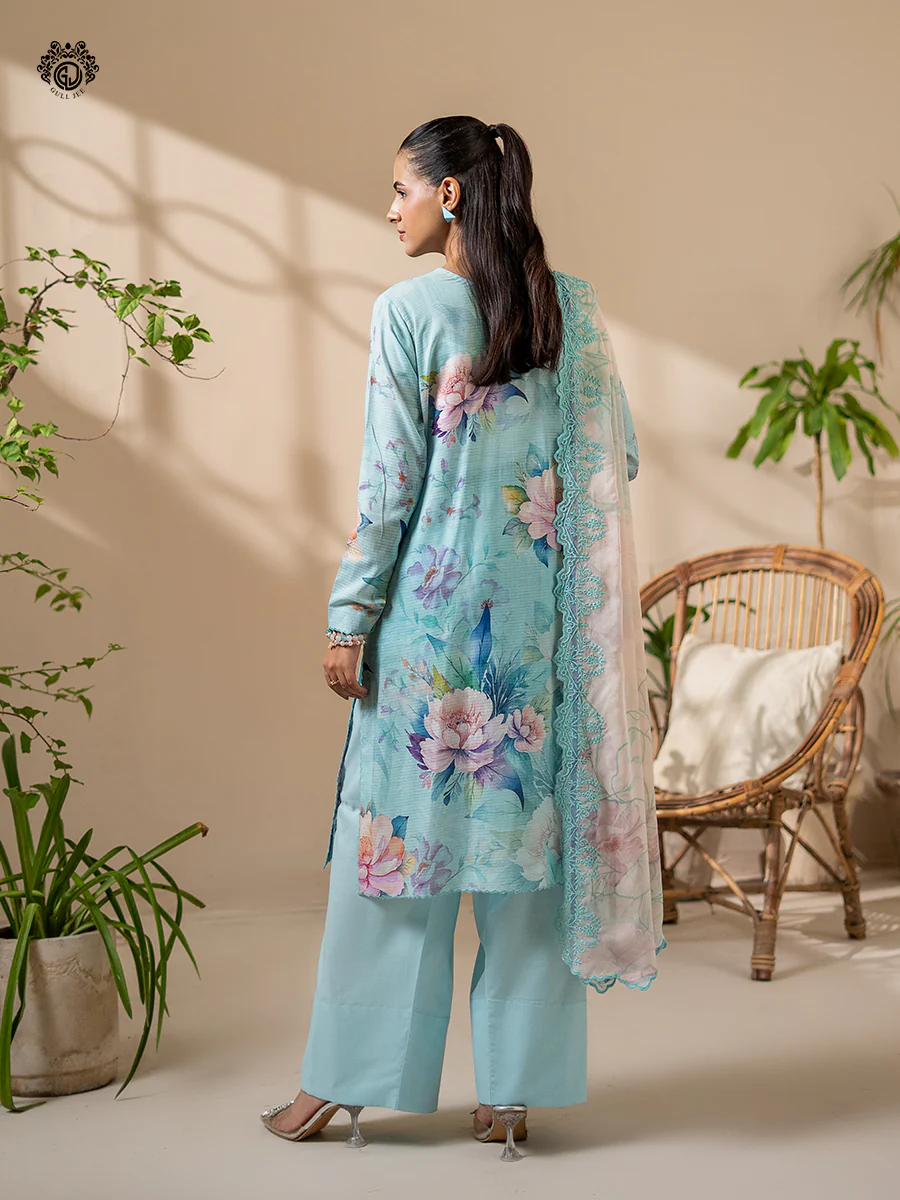 Front: Digital Printed Lawn with Embroidered Neckline & Daman