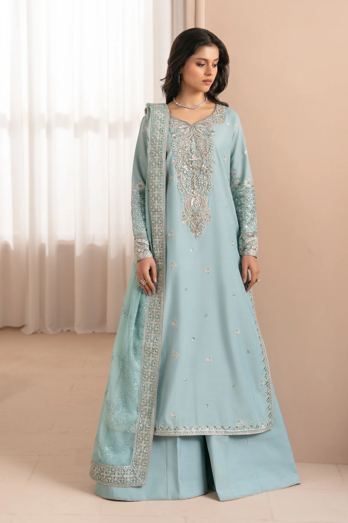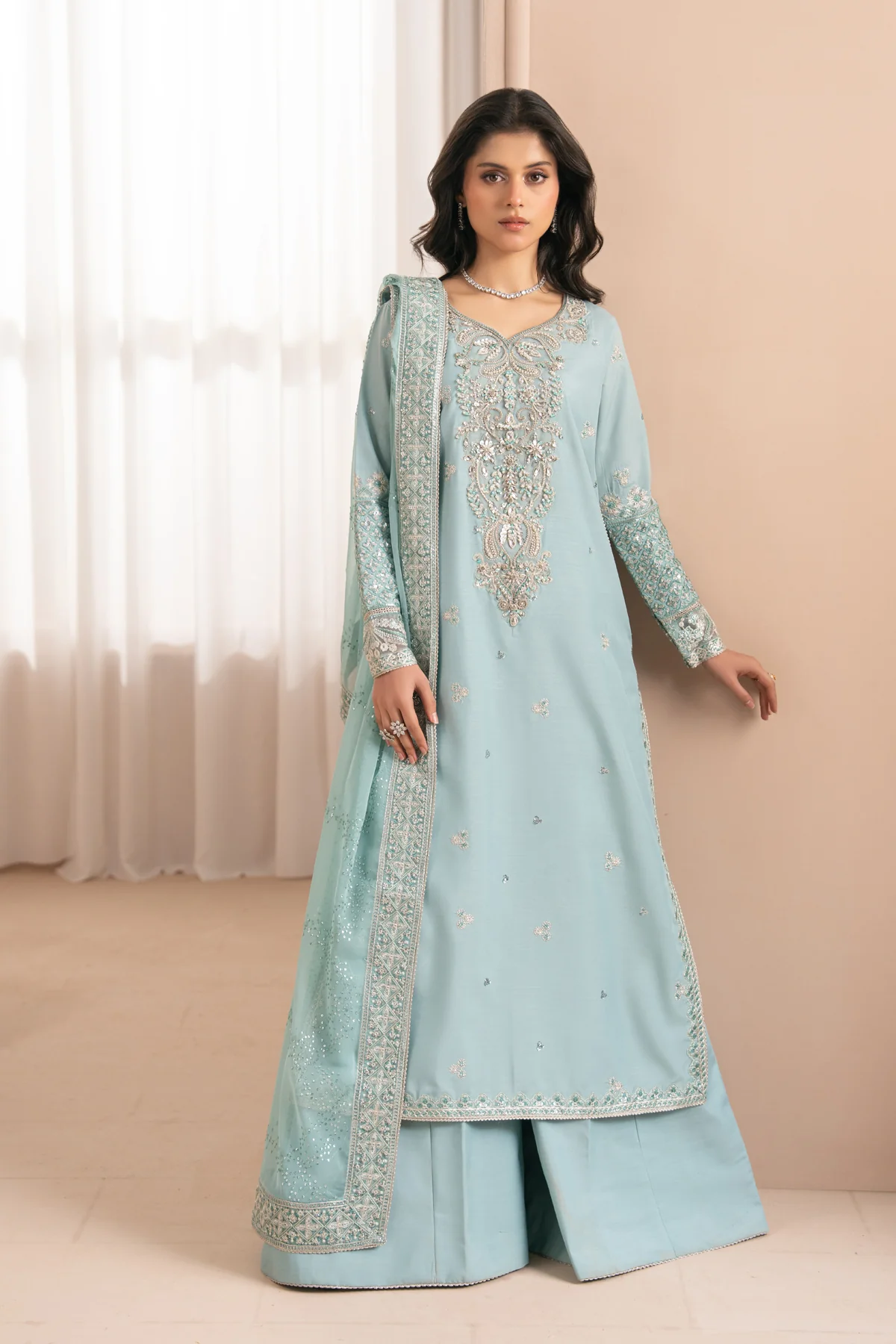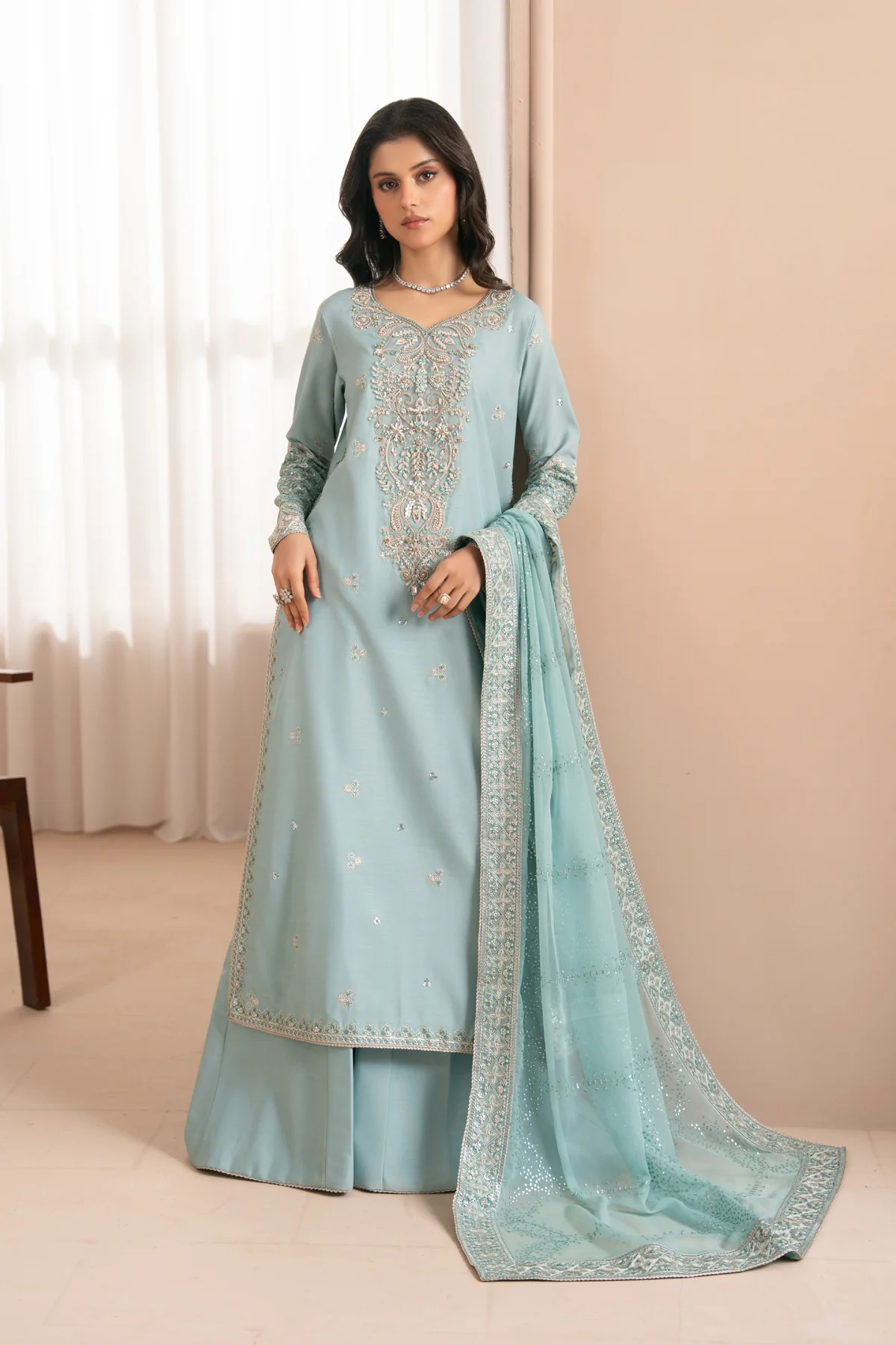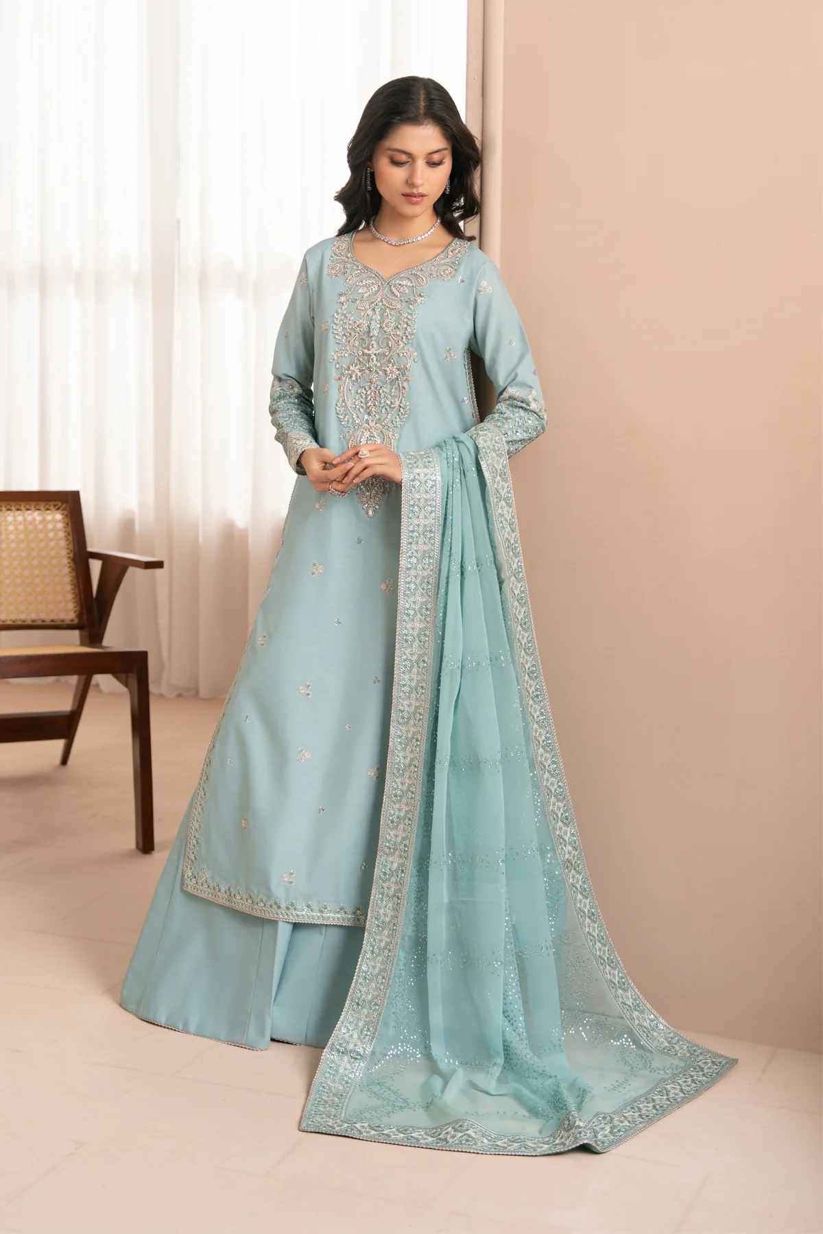 Embroidered Chiffon Dupatta with Embroidered Dupatta Border