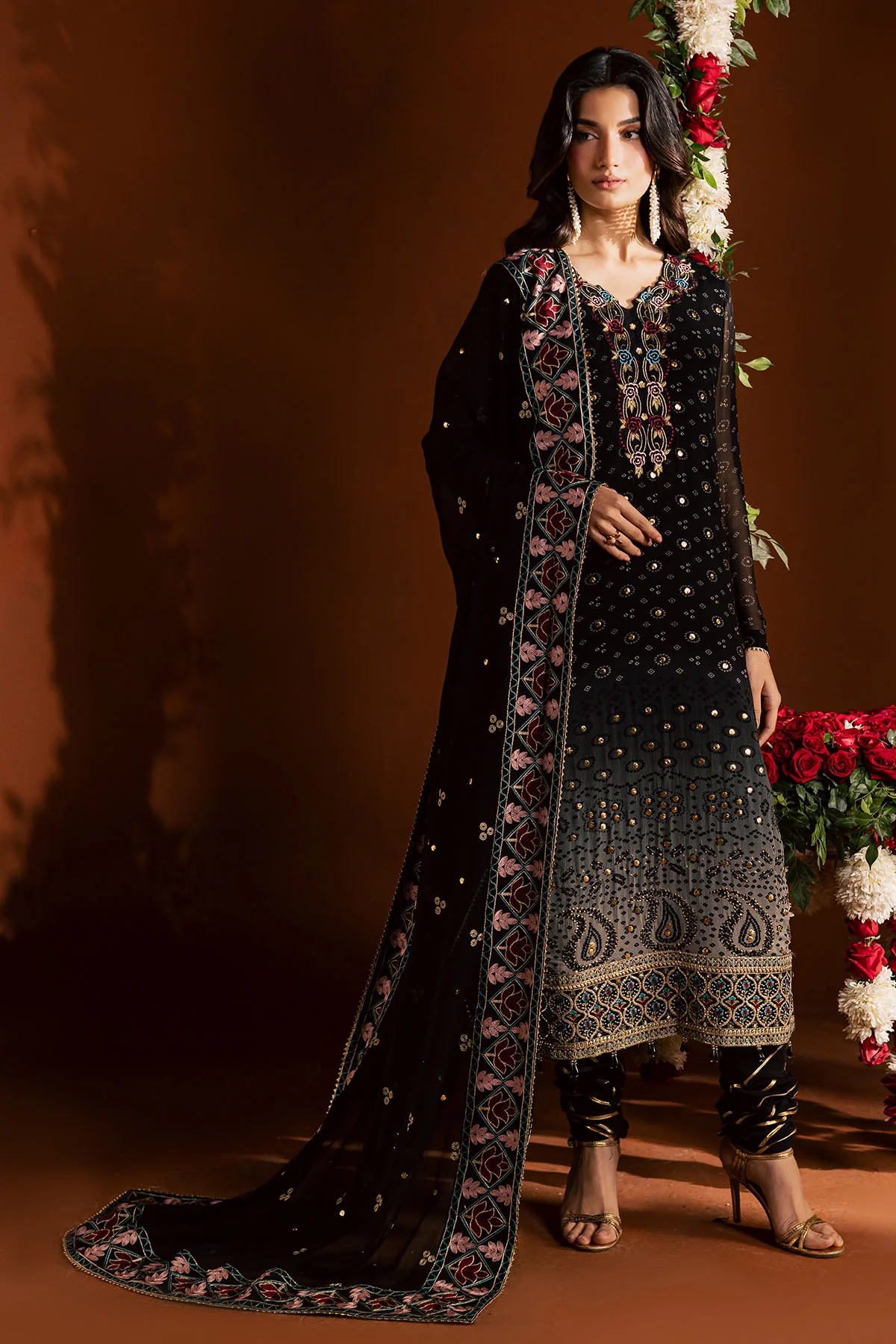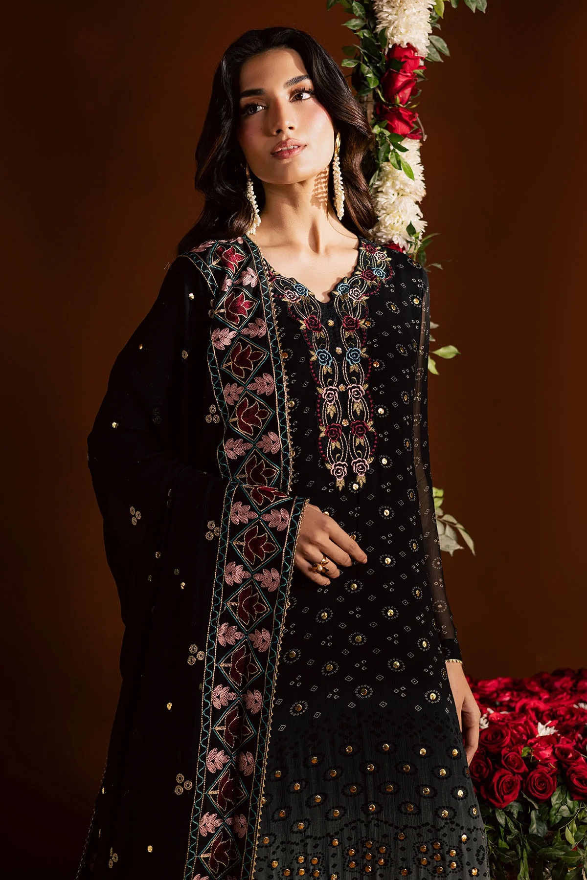 | Zari Embroidered and Mukeshkari Work on Ready to Wear Chiffon Dupatta |
